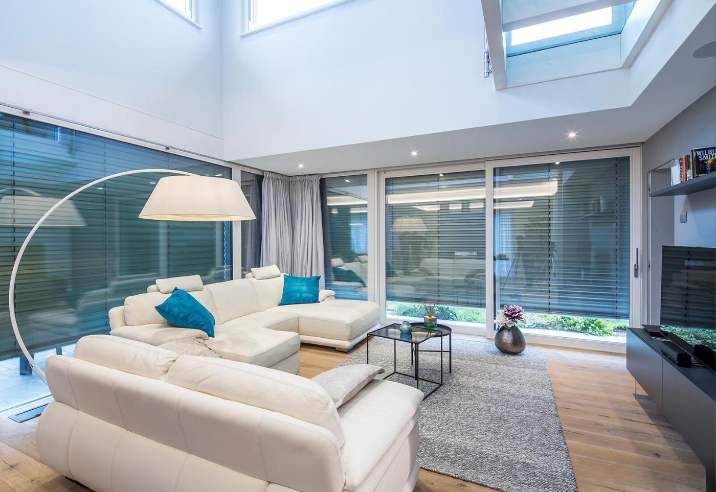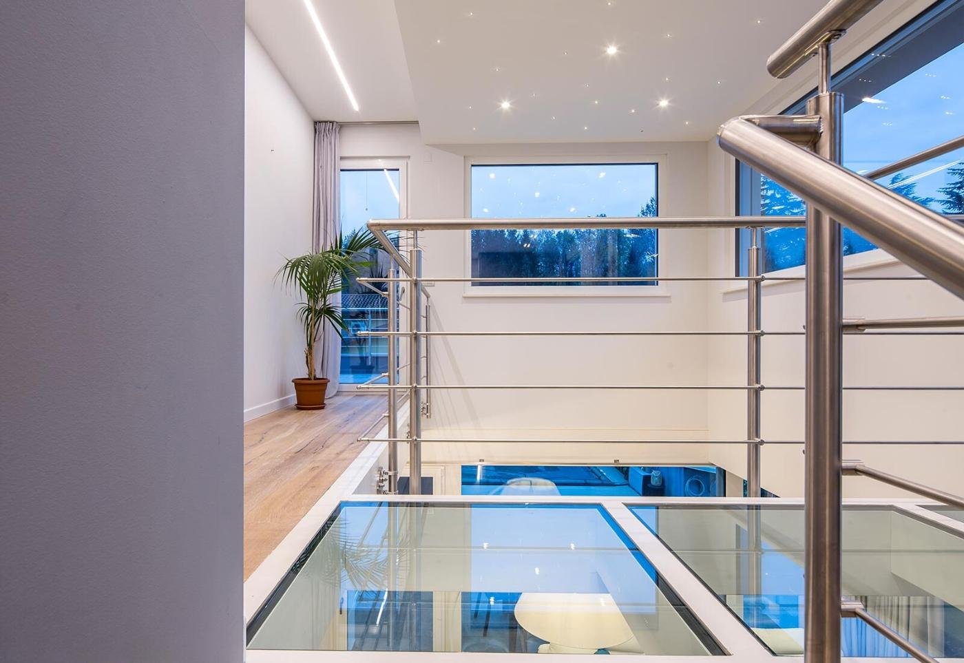 Expansive glass walls and stylish details.